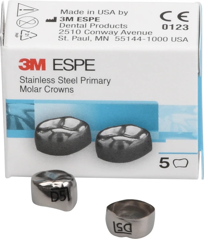 3M™ Edelstahlkronen für 6-Jahr-Molaren bestehen aus einer hochwertigen, gehärteten Edelstahllegierung und bieten dank des zervikalen Federrands eine hochkomfortable Einpassung mit exaktem Randschluss.
