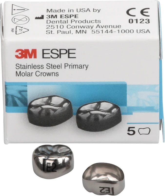3M™ Edelstahlkronen für 6-Jahr-Molaren bestehen aus einer hochwertigen, gehärteten Edelstahllegierung und bieten dank des zervikalen Federrands eine hochkomfortable Einpassung mit exaktem Randschluss.
