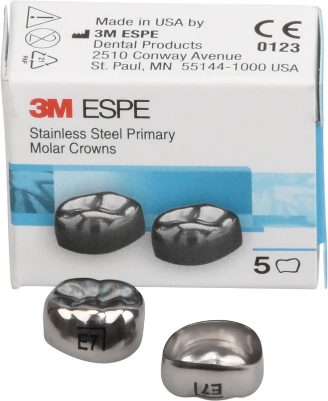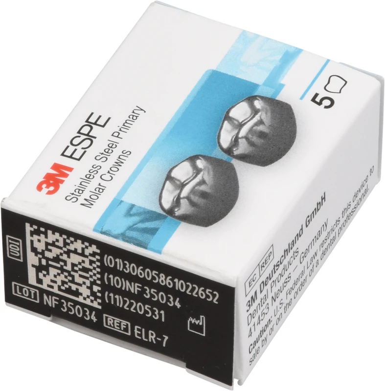 3M™ Edelstahlkronen für 6-Jahr-Molaren bestehen aus einer hochwertigen, gehärteten Edelstahllegierung und bieten dank des zervikalen Federrands eine hochkomfortable Einpassung mit exaktem Randschluss.