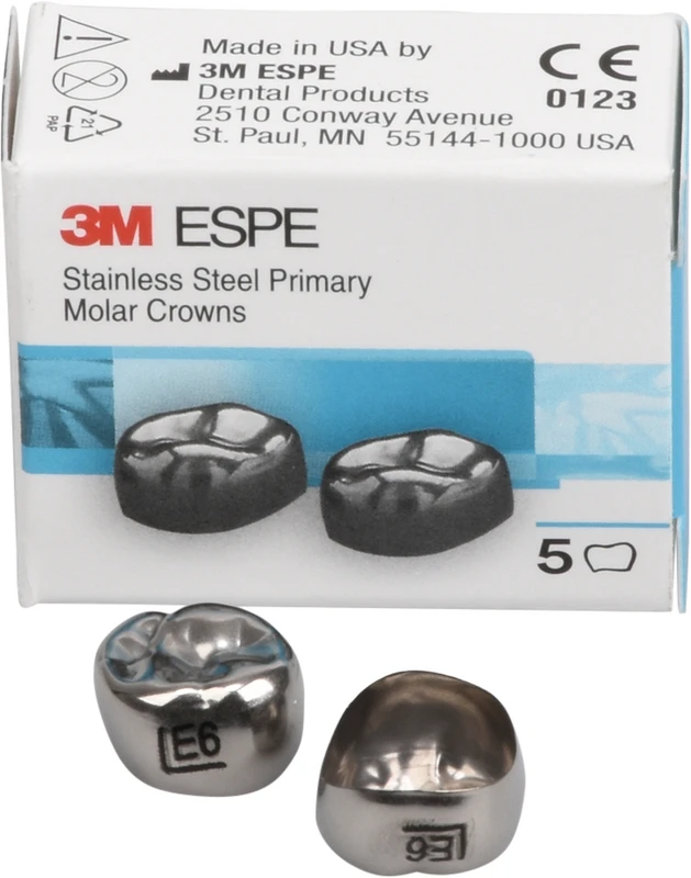 3M™ Edelstahlkronen für 6-Jahr-Molaren bestehen aus einer hochwertigen, gehärteten Edelstahllegierung und bieten dank des zervikalen Federrands eine hochkomfortable Einpassung mit exaktem Randschluss.