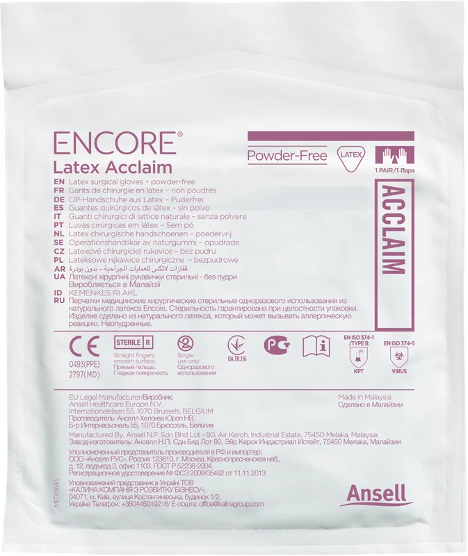 - Die auf der DERMASHIELD™-Technologie basierende Innenschicht ermöglicht ein müheloses Anziehen mit trockenen und feuchten Händen und Wechseln während der Operation