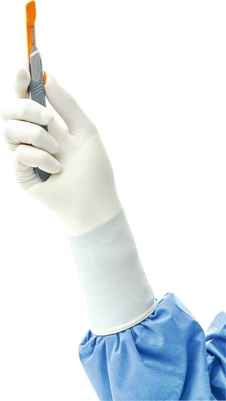 - Das Ergebnis der speziellen Materialmischung ist ein weicher und gleichzeitig robuster OP-Handschuh