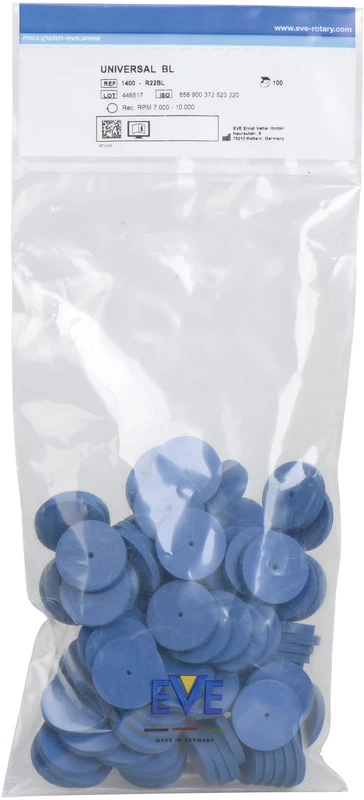 Produktinformationen "EVE UNIVERSAL blau Packung 100 Stück unmontiert, blau mittel, Figur Rad, 22 x 3 mm"