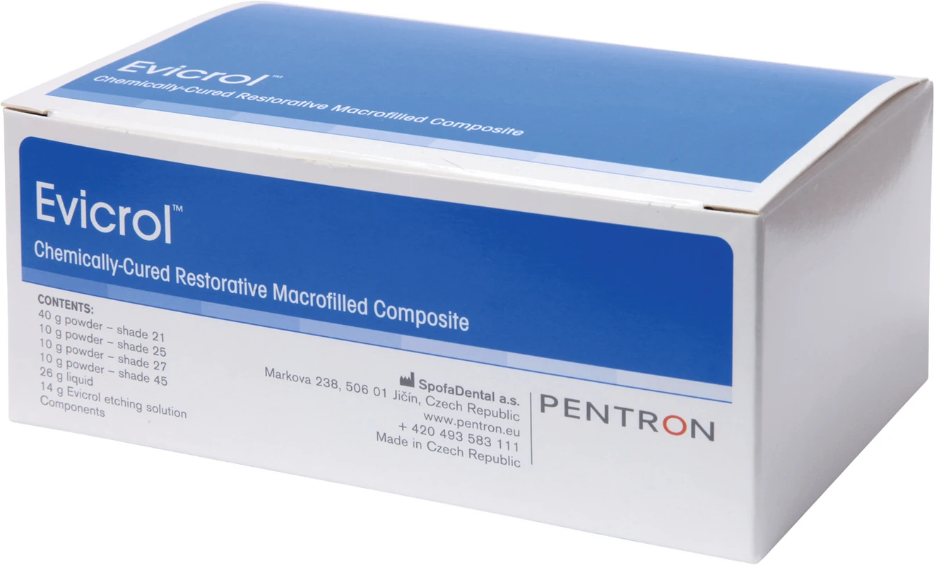 Produktinformationen "Evicrol™ Set 40 g Grundfarbton, 3 x 10 g Zusatzfarbtöne, 26 g Liquidum, 14 g Ätzlösung, Zubehör"