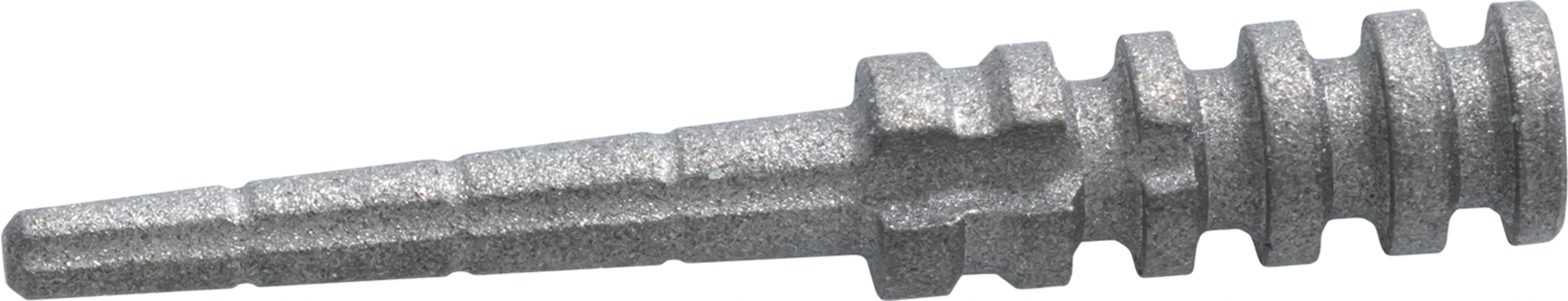 Exatec–S Wurzelstift mit selbstschneidenden Sägezähnen für Zähne mit starker Wurzel. 4 Abflußrillen Großer Stiftquerschnitt (> 3 mm²) und gerundeter Übergang für hohe Festigkeit Selbstschneidende Sägezähne Abgerundetes Stiftende Das Exatec-S Einsetz-Tool (29581) wird dazu verwendet, den Exatec-S Wurzelstift im Stiftkopf-Bereich zu halten und den Wurzelstift mit der Hand einschrauben zu können Inhalt Wurzelstifte