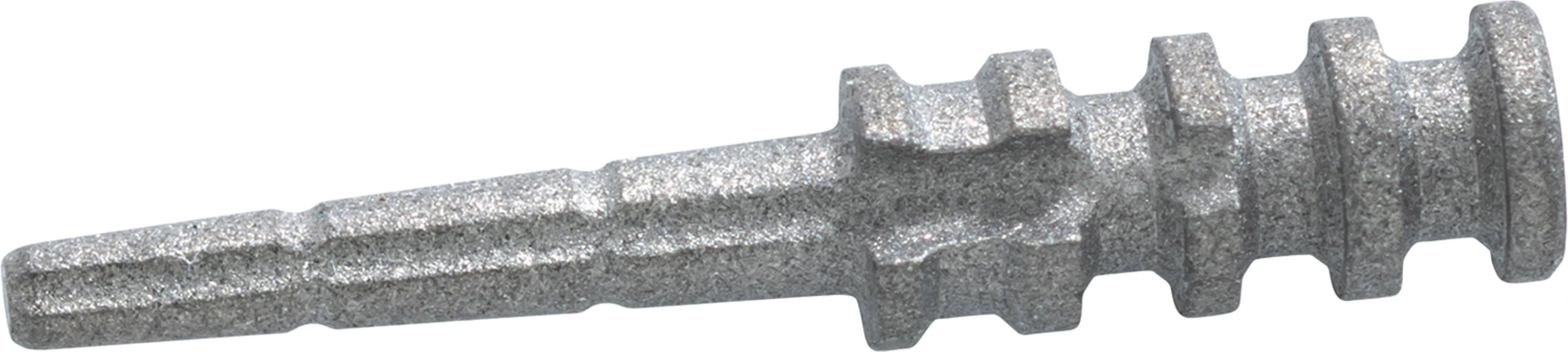 Exatec–S Wurzelstift mit selbstschneidenden Sägezähnen für Zähne mit starker Wurzel. 4 Abflußrillen Großer Stiftquerschnitt (> 3 mm²) und gerundeter Übergang für hohe Festigkeit Selbstschneidende Sägezähne Abgerundetes Stiftende Das Exatec-S Einsetz-Tool (29581) wird dazu verwendet, den Exatec-S Wurzelstift im Stiftkopf-Bereich zu halten und den Wurzelstift mit der Hand einschrauben zu können Inhalt: Wurzelstifte