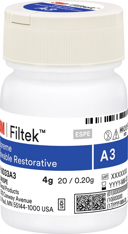 Das 3M™ Filtek™ Supreme Flowable Fließfähige Komposit wurde für eine Vielzahl von Indikationen und Techniken entwickelt und bietet langanhaltende Verschleißfestigkeit und Glanzbeständigkeit. Das fließfähige Komposit ist in 12 Farben erhältlich, die auf die Body-Farben von 3M™ Filtek™ Universal Restorative und 3M™ Filtek™ Supreme XTE Universal Komposit abgestimmt sind.
