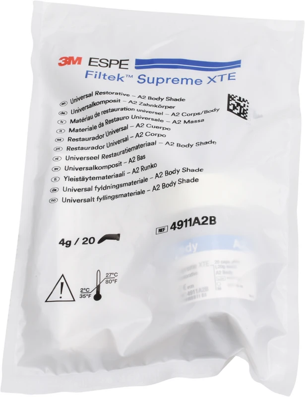 Das vielseitige 3M™ Filtek™ Supreme XTE Universal wurde für jede Art von Restauration entwickelt – ob im Front- oder Seitenzahnbereich – und zeichnet sich durch hervorragende Polierbarkeit, einfache Anwendung und herausragende Festigkeit aus. Dieses universell einsetzbare Füllungsmaterial ist ein fluoreszierendes, röntgenopakes Komposit, für höchste ästhetische Ansprüche. Erhältlich in 36 Farbtönen und 4 Opazitäten (Dentin, Body, Schmelz, Transluzent).