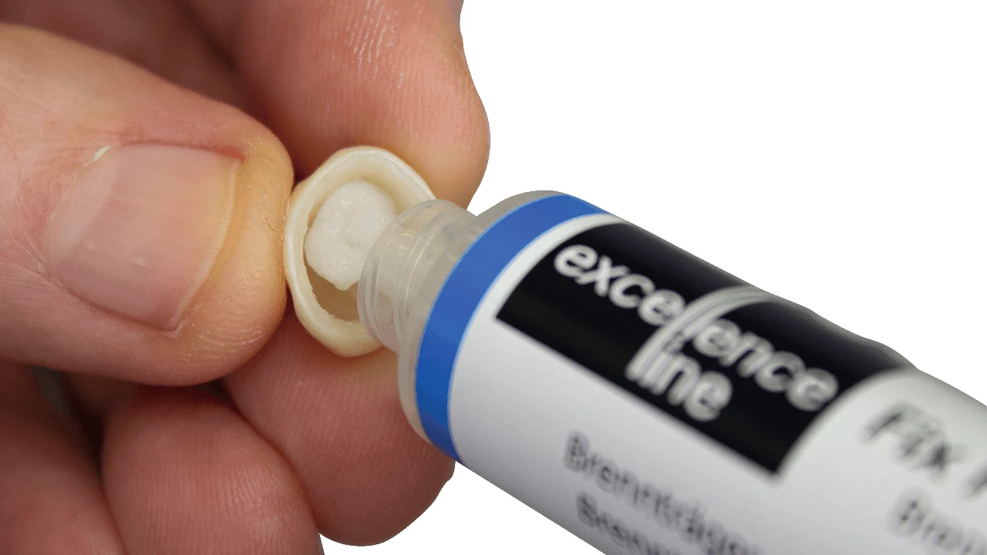 Die Fix Firing Paste ist eine gebrauchsfertige Paste zum Herstellen von individuellen Brenngutträgern. Mit diesem feuerfesten Material können Inlays, Onlays, Veneers, Kronen und Brücken sicher auf Pins positioniert oder direkt auf dem Brenngutträger fixiert werden.