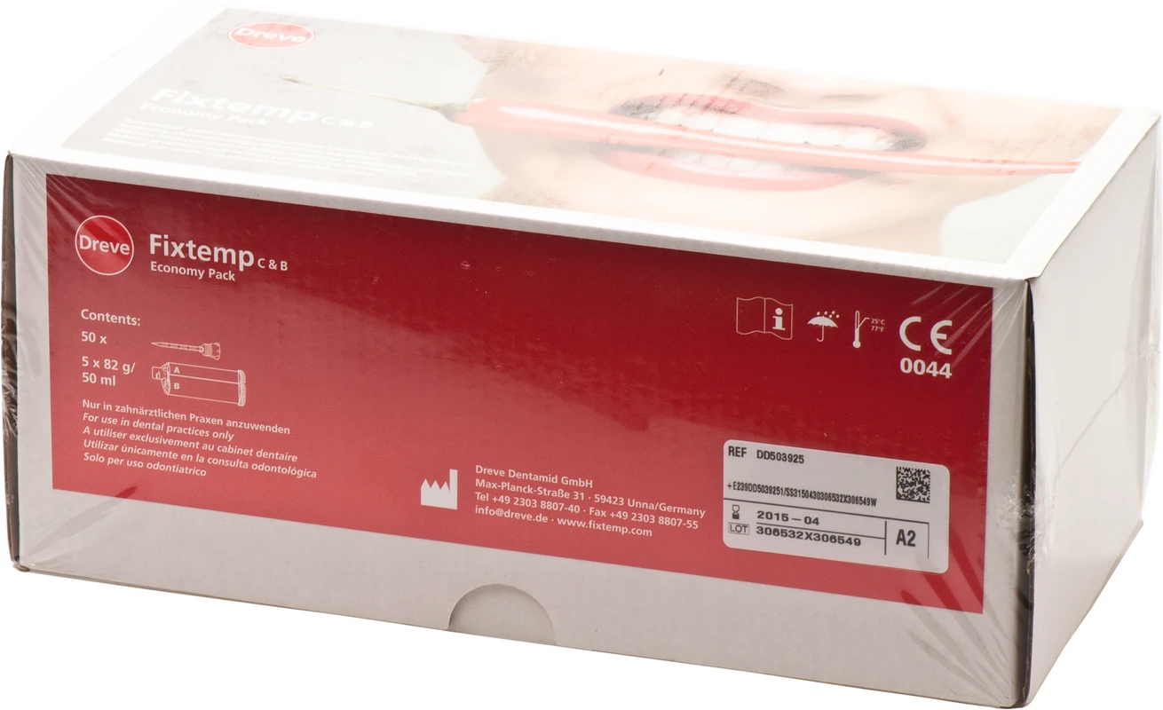 Fixtemp C&B 4:1 Packung 50 ml Doppelkartusche A3,5, 10 Mischkanülen hellblauProduktinformationen "Fixtemp C&B 4:1 Packung 5 x 50 ml Doppelkartusche A2, 10 Mischkanülen hellblau"