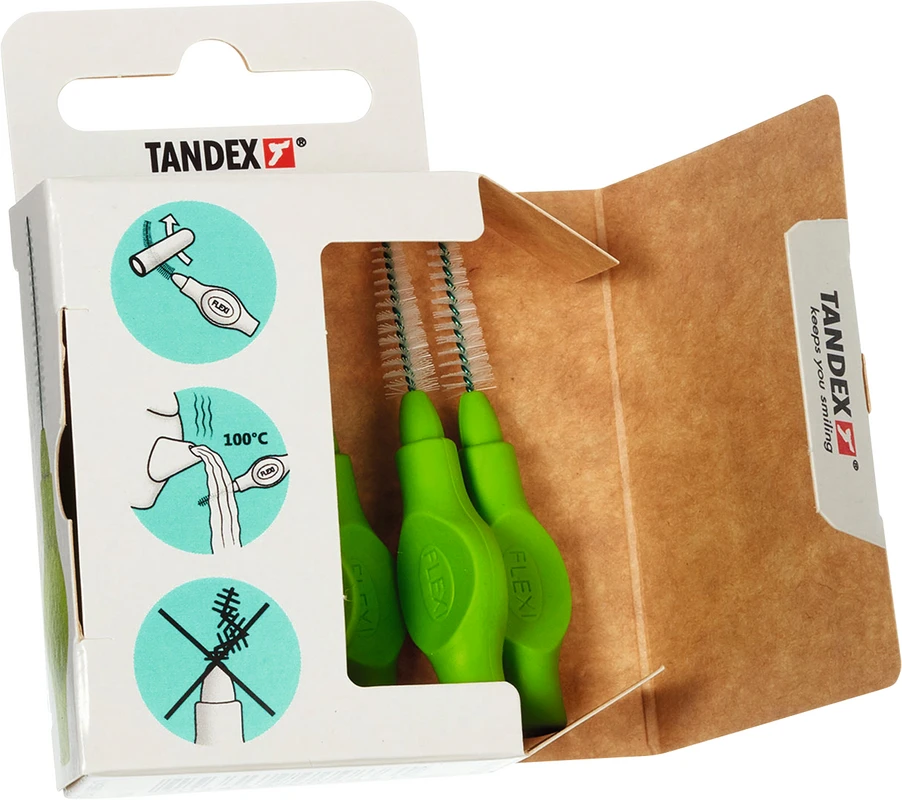 Der ergonomische Gummigriff und die weiche Soft-Griffschicht, ermöglicht einen sicheren Halt – sogar wenn die Finger feucht sind. Der flexible Griff ist frei von Phtalate und trägt zu einer bequemen Reinigung in allen Interdentalräumen bei. Der kunststoffbeschichtete Draht ist ausdauernd und schützt Zahnfleisch und Zahnschmelz. 11 farbkodierte Gröβen - Besonders für die tägliche Reinigung von Interdentalräumen, festen Zahnspangen und Zähnen mit Furkationsbefall. Zwei Packungsgröβen aus recyclebarer FSC-zertifizierter Pappe: 6 Stück einschl. Schutzhaube. 25 Stück Value Pack einschl. Schutzhauben. FLEXI® Interdentalbürsten PHD sind in Zusammenarbeit mit dänischen Zahnärzten und Prophylaxe Assistenten entwickelt worden, um den Patienten das optimale Hilfsmittel für die Zahnzwischenraumpflege empfehlen zu können.