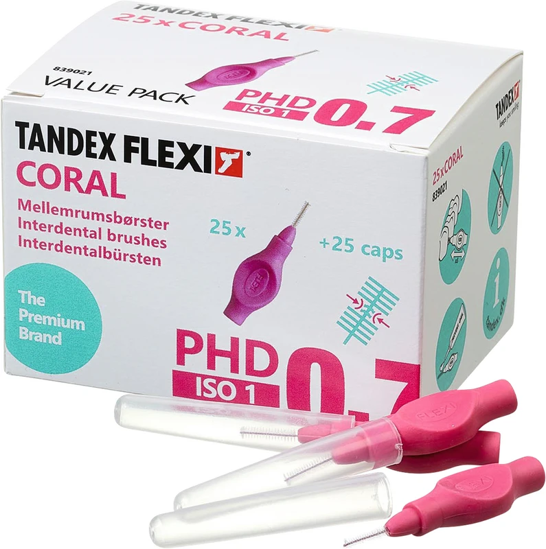 FLEXI® Interdentalbürsten PHD Value Pack 25 Stück coral, PHD 0.7 (Ø 0,4 mm), ISO 1