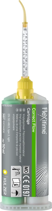 Produktinformationen "Flexitime® Packung 2 x 50 ml Doppelkartusche Correct Flow, leichtfließend, 6 Mischkanülen gelb 1:1"