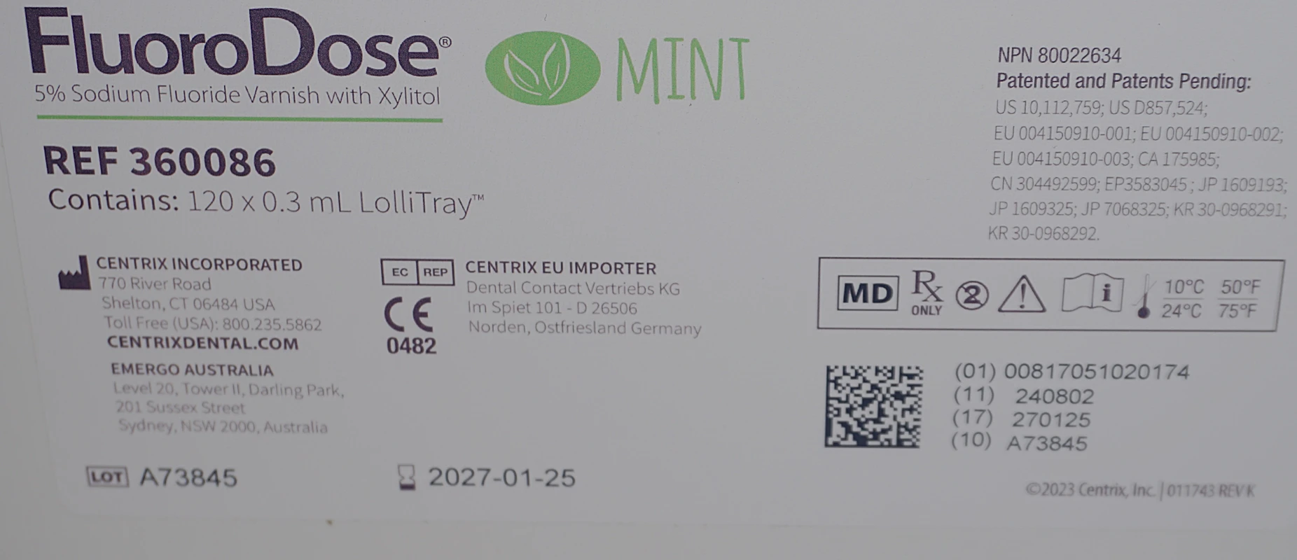 FluoroDose® enthält einen 5 %igen weißen Natriumfluorid-Kavitätenlack in der LolliPack -Einwegpackung, die maximal zulässige Fluoriddosis, und ist von der FDA für die Behandlung von Dentinüberempfindlichkeit zugelassen. Keine schmierenden Gele und unbequemen Löffel mehr; keine Angst mehr vor dem Verschlucken von Fluorid. Eintauchen. Mischen. Auftragen. Wegwerfen. Centrix macht die Fluoridlackierung sicherer und das Reinigen einfacher.