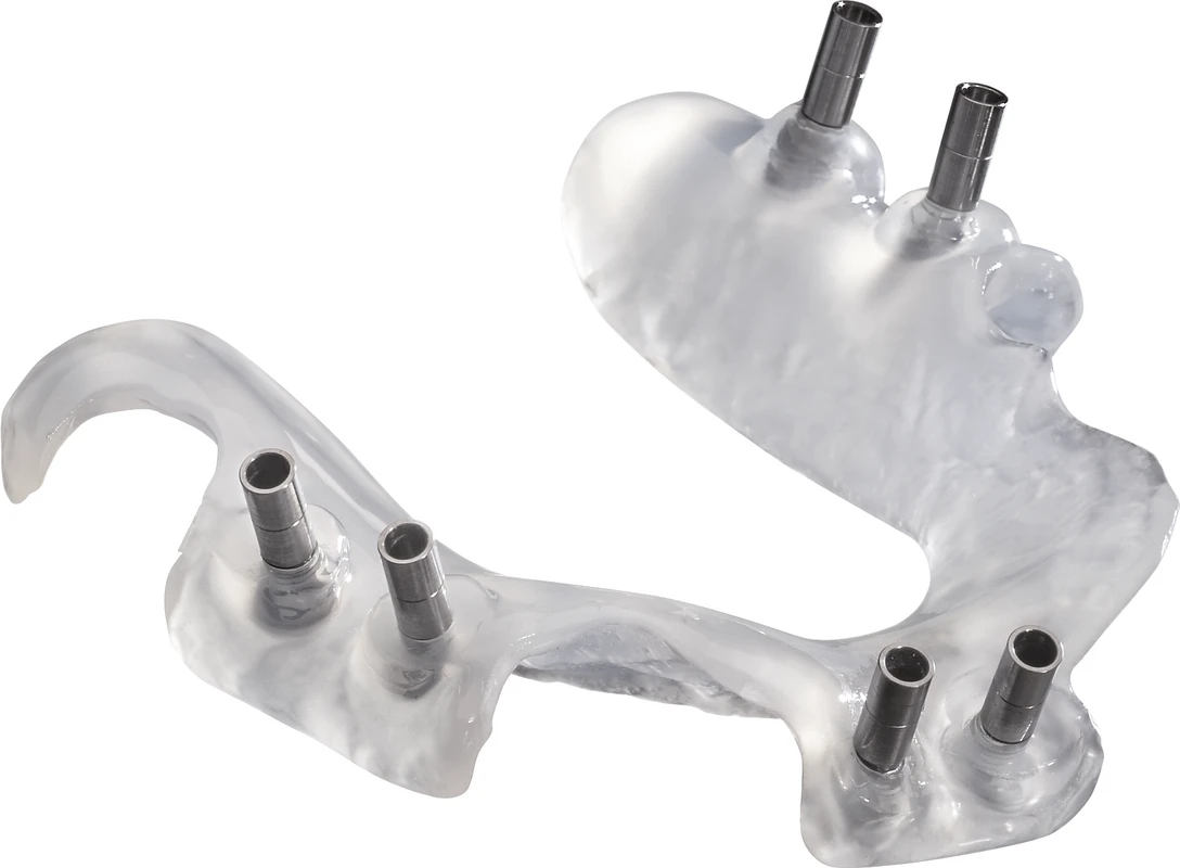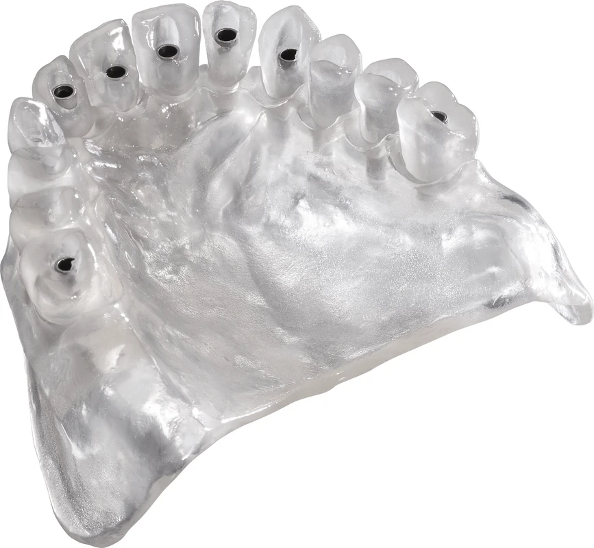 Gebrauchsfertiger Modellierkunststoff, lichthärtend, für multiple Indikationen (z. B. Bohr-, Röntgenschablonen, Schienen, Basisplatten, Übertragungsschlüssel). Röntgentransluzent, sterilisierbar & desinfizierbar, biokompatibel.