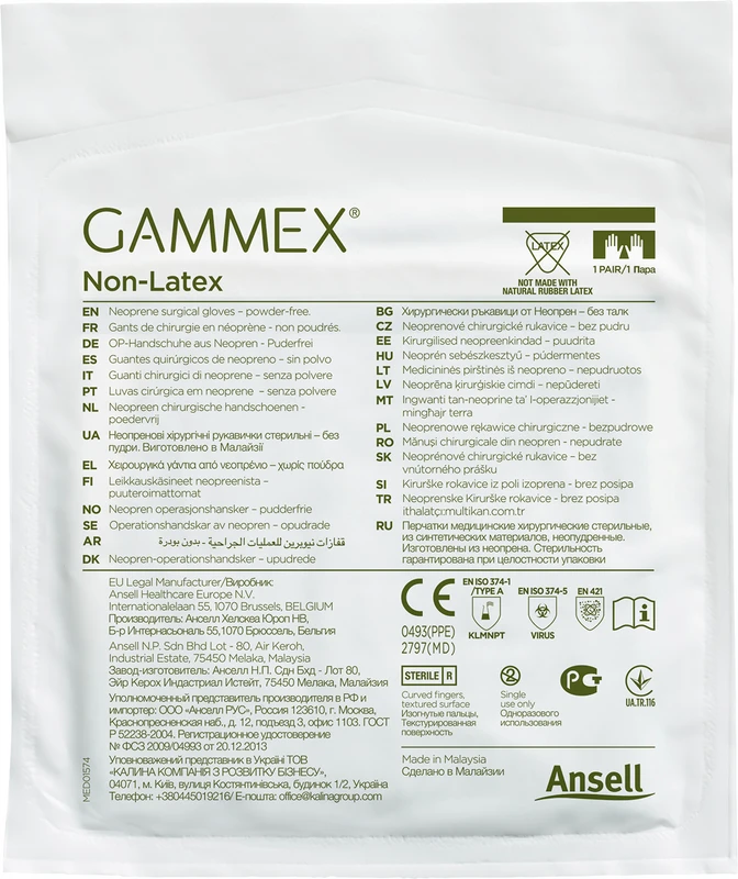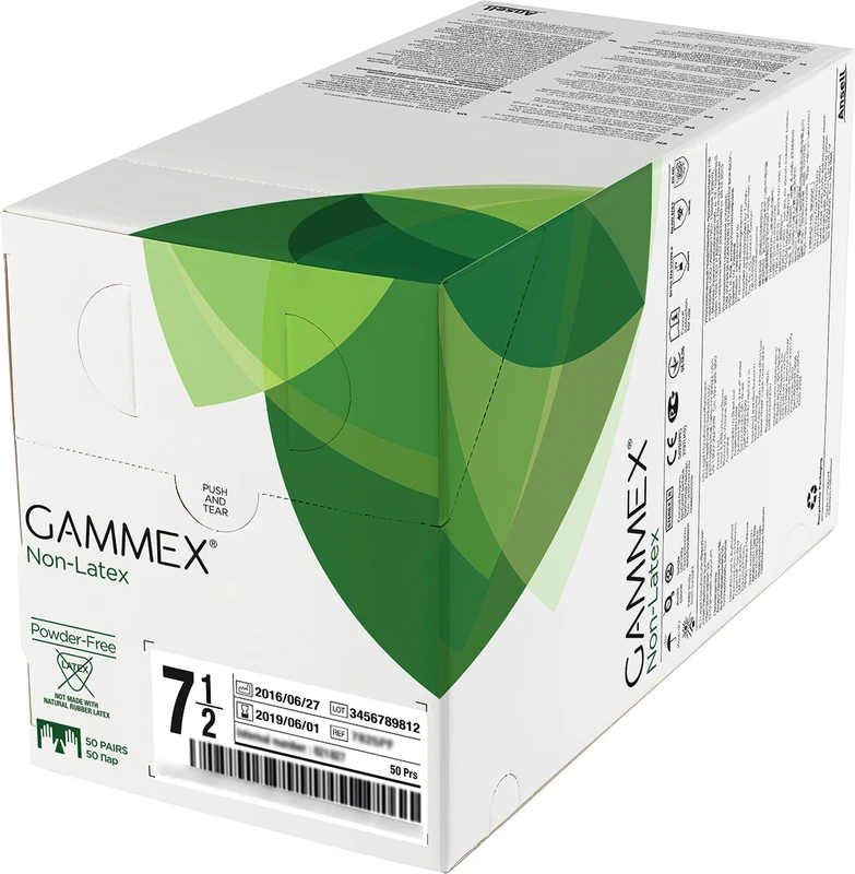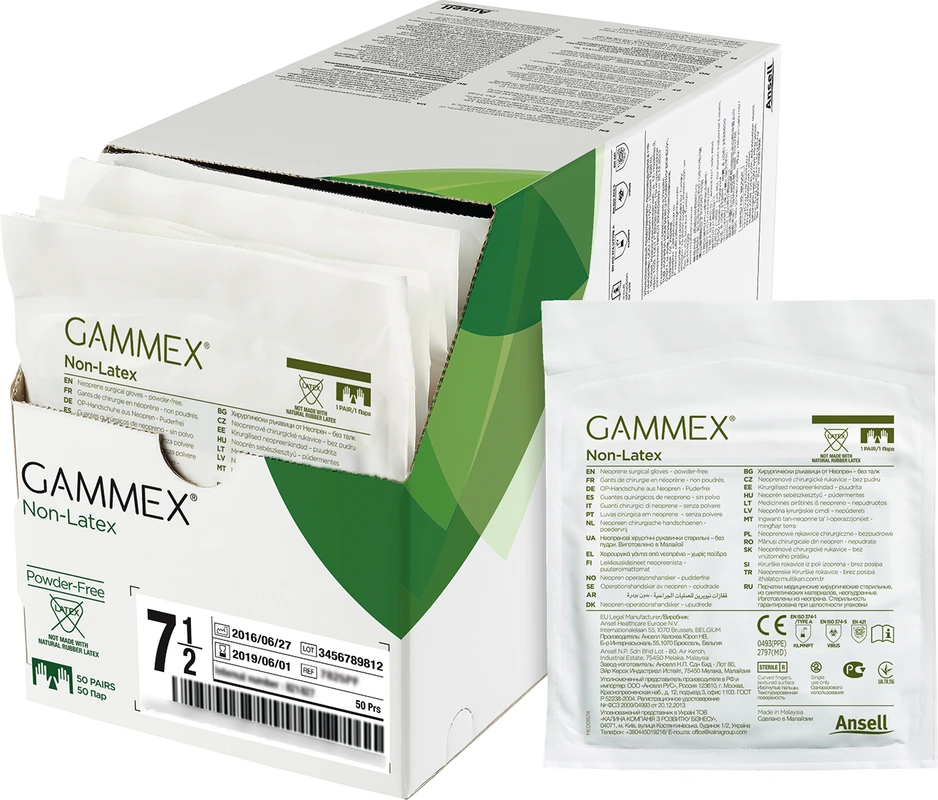 Ansell Gammex® Non-Latex sind grüne, Operationshandschuhe aus Neopren, frei von Beschleunigerchemikalien für einen fortschrittlichen und sorgenfreien Allergieschutz.