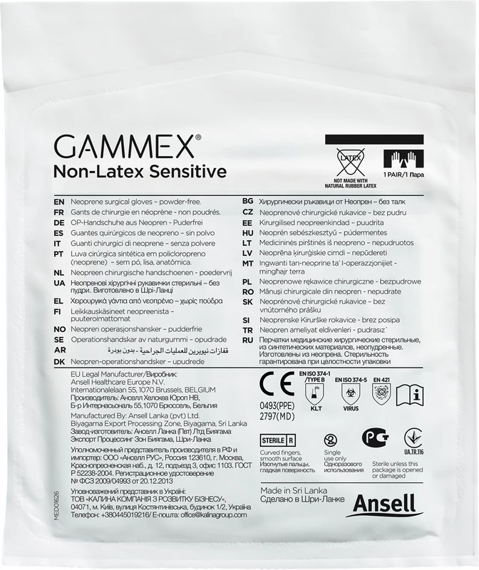 Ansell Gammex® Non-Latex Sensitive sind naturfarbene OP-Handschuhe aus Neopren, frei von Beschleunigerchemikalien mit einer herausragenden Kombination aus Tastsensibilität und Robustheit