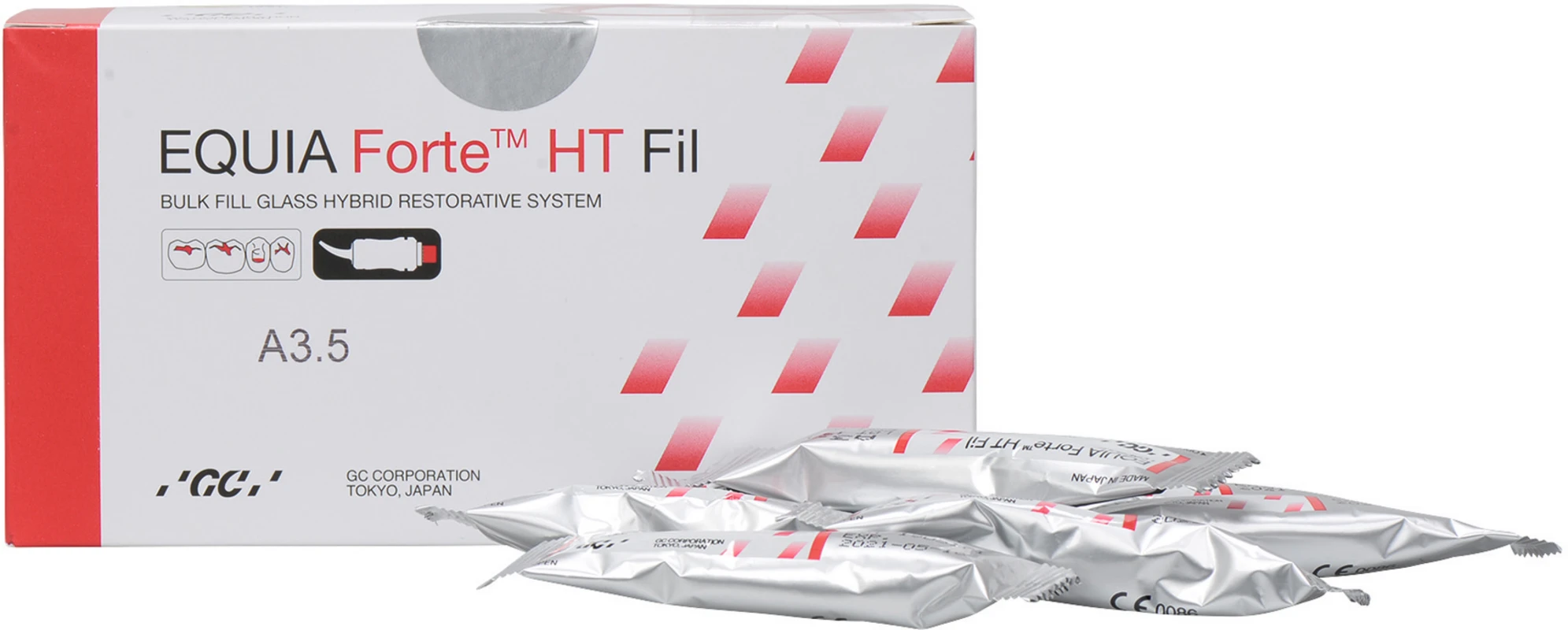 EQUIA Forte™ HT Langzeit-Glas-Hybrid-Restaurationssystem für kaudruckbelastete Klasse I und II* Füllungen. EQUIA Forte™ HT ist der innovative Neuzugang im Glas-Hybrid-Sortiment von GC. Die Hybrid-Technologie steht für: Längere Verarbeitungszeit, höhere Stabilität und verbesserte Ästhetik. Darüber hinaus eignet es sich ebenfalls als Amalgamalternative.