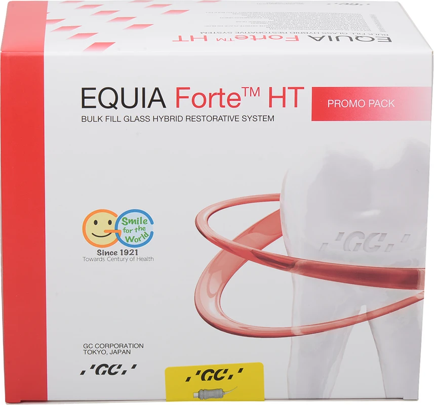 EQUIA Forte™ HT Langzeit-Glas-Hybrid-Restaurationssystem für kaudruckbelastete Klasse I und II* Füllungen. EQUIA Forte™ HT ist der innovative Neuzugang im Glas-Hybrid-Sortiment von GC. Die Hybrid-Technologie steht für: Längere Verarbeitungszeit, höhere Stabilität und verbesserte Ästhetik. Darüber hinaus eignet es sich ebenfalls als Amalgamalternative.