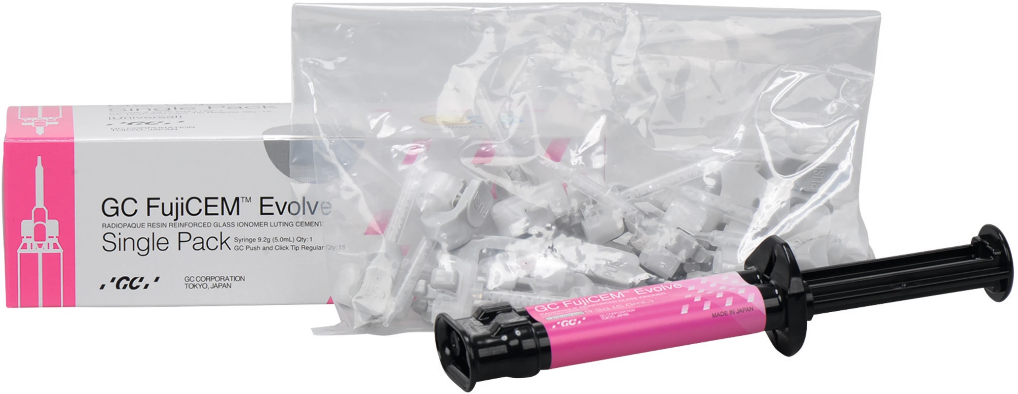 Produktinformationen "GC FujiCEM™ Evolve Single Pack 9,2 g/ 5 ml Spritze, 15 Mixing Tips Regular"