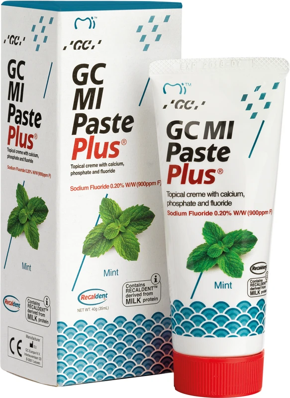 GC MI Paste Plus® enthält darüber hinaus eine einzigartige, patentierte Fluorid-Form. GC MI Paste Plus® setzt alle drei Ionenarten frei, die zur Bildung säureresistenten Fluorapatits benötigt werden, sowohl durch Remineralisierung als auch durch Fluoridierung. CPP-ACP wurde an der School of Dental Science an der Universität von Melbourne Victoria in Australien entwickelt. Recaldent™ ist ein Warenzeichen unter Lizenz. Recaldent™ (CPP-ACP) wird aus Milch-Kasein gewonnen. Nicht anzuwenden bei Patienten mit Allergie gegen Milchprotein- und/oder Hydroxybenzoate.