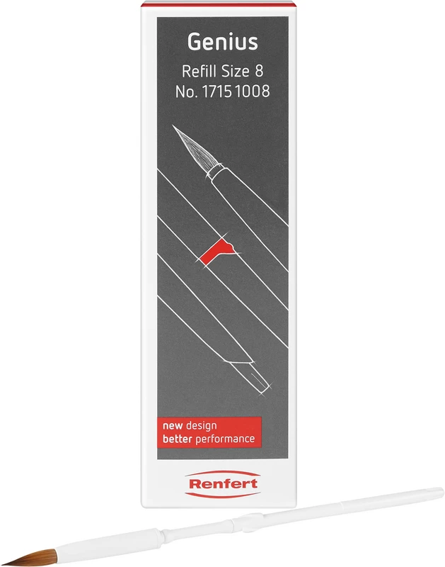 Naturhaarpinsel mit Schutzfunktion. Hochwertiger Naturhaarpinsel mit integrierter Schutzfunktion im Griff in modernem Design. Um beim Pinselhaar hohe Werte in punkto Spannung, Formstabilität und Langlebigkeit zu erreichen, kommt hier die einzigartige Fertigungstechnik von Renfert zum Einsatz.