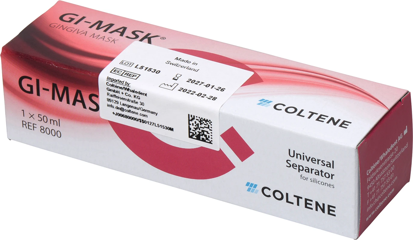 GI-MASK® Automix New Formula wird für die präzise Erfassung des Zahnfleischverlaufs verwendet. Diese Zahnfleischmaske aus A-Silikon liefert alle Informationen für die exakte Gestaltung von Implantaten und metallkeramischen Gerüsten.