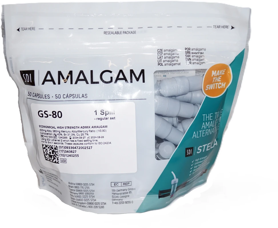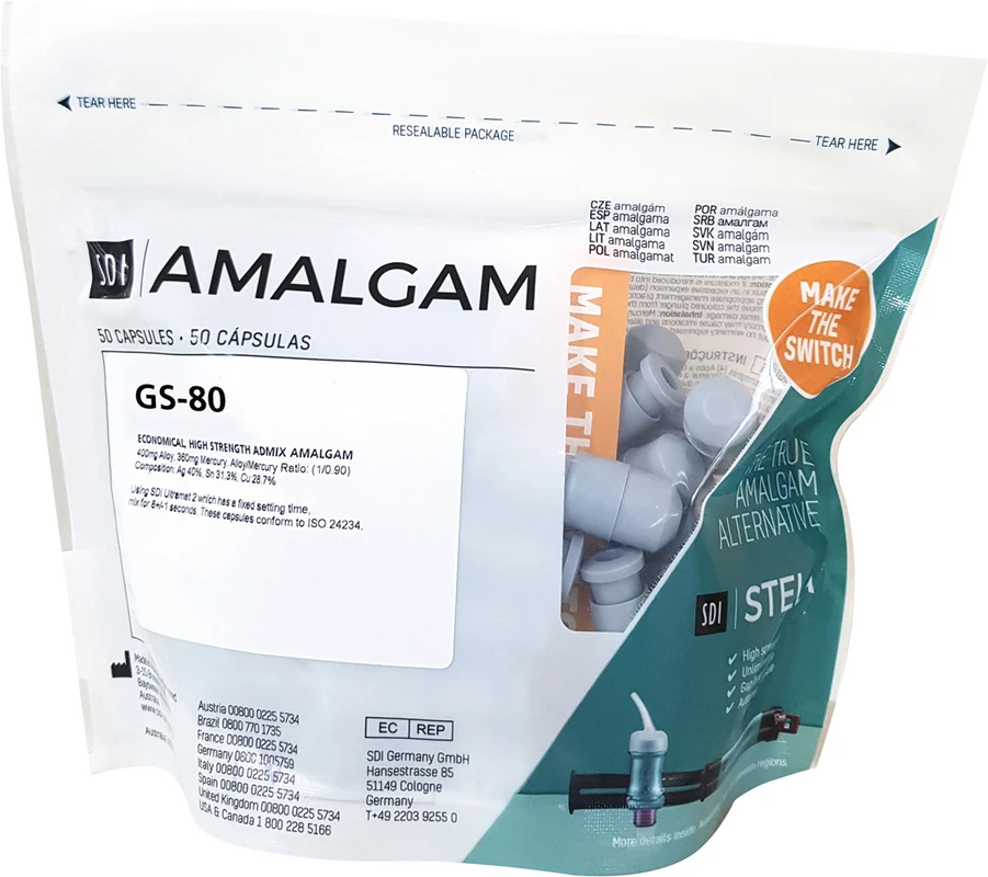 gs-80, das technisch ausgereifte non-gamma 2 Admix-Amalgam zum günstigen Preis. Aufgrund der hohen Druckfestigkeit und positiven Dimensionsveränderung sind Restaurationen mit GS-80 langlebig und garantieren die Zufriedenheit der Patienten. Seit der weltweiten Einführung 1986 wurden über 200 Millionen Restaurationen mit gs-80 erfolgreich durchgeführt. gs-80 weist eine außergewöhnlich hervorragende Konsistenz auf. Aufgrund seiner einfachen Applikation, Stopf- und Finierbarkeit, der Qualität der interproximalen Kontakte, seiner Schnitzbarkeit und der großen Auswahl an Härtegraden erfüllt gs-80 alle Anforderungen des Benutzers.