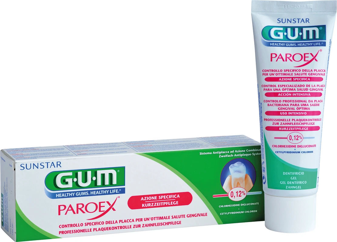 GUM® PAROEX® 0,12 % Zahngel für die intensive Zahnfleischpflege – jetzt bei dentalkiosk.de verfügbar.