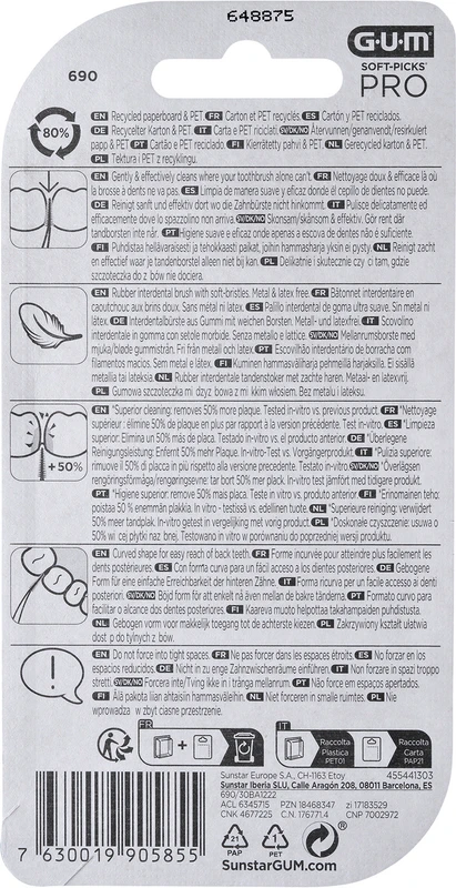 Die GUM® SOFT-PICKS® PRO eignen sich hervorragend für die tägliche Anwendung. Dank ihrer flexiblen, weichen Borsten gleiten sie leicht zwischen die Zähne und ermöglichen eine angenehme und effektive Reinigung auch bei engen Zwischenräumen.