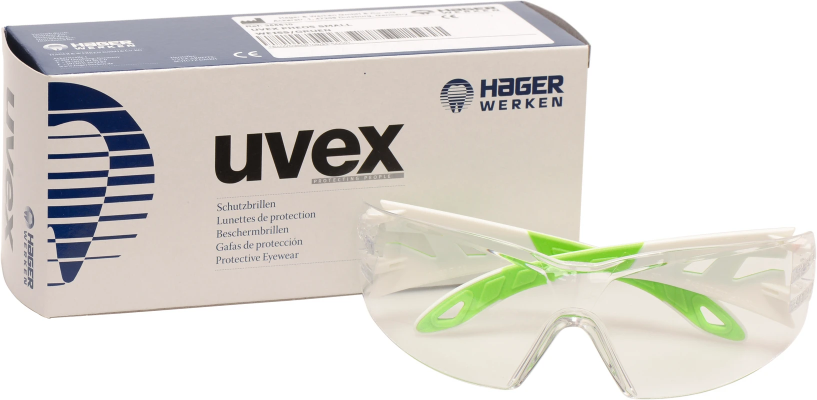 Produktinformationen "Hager iSpec® Pure Fit Stück Brille small, Fassung weiß/grün, Scheibe farblos"