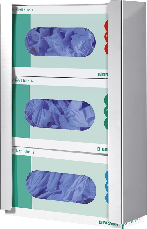 Wandhalter zur Aufnahme von Untersuchungshandschuh-Dispenserboxen.
