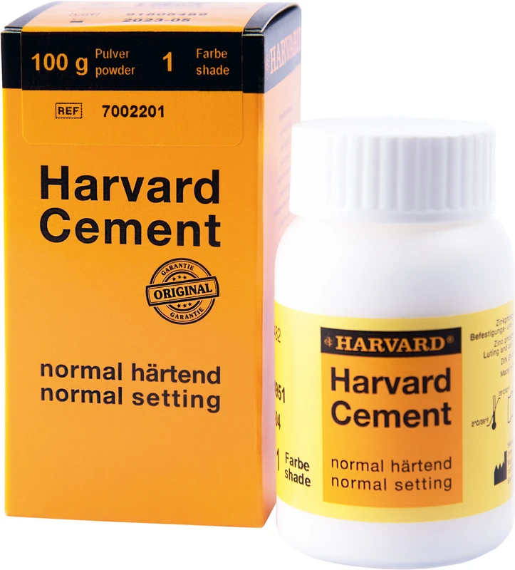 Harvard Cement, das Original. Zinkphosphatzement für die definitive Befestigung von Kronen, Brücken, Inlays und Onlays auf natürlichen Zahnstümpfen und für Zementierungen implantatgetragener Suprakonstruktionen.