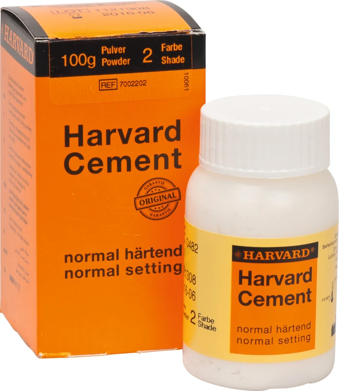 Harvard Cement, das Original. Zinkphosphatzement für die definitive Befestigung von Kronen, Brücken, Inlays und Onlays auf natürlichen Zahnstümpfen und für Zementierungen implantatgetragener Suprakonstruktionen.