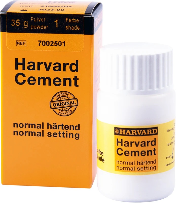 Harvard Cement, das Original. Zinkphosphatzement für die definitive Befestigung von Kronen, Brücken, Inlays und Onlays auf natürlichen Zahnstümpfen und für Zementierungen implantatgetragener Suprakonstruktionen.