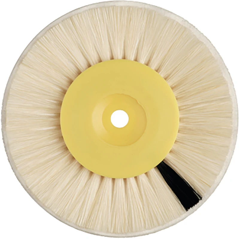 2 Reihen weißer Chungking-Borsten umranden ein 1-lagiges weißes Faservlies, welches die Eigenschaft hat, Bimsstein wie ein Schwamm aufzusaugen und dann zusammen mit den Borsten die Kunststoffoberfläche zu polieren.