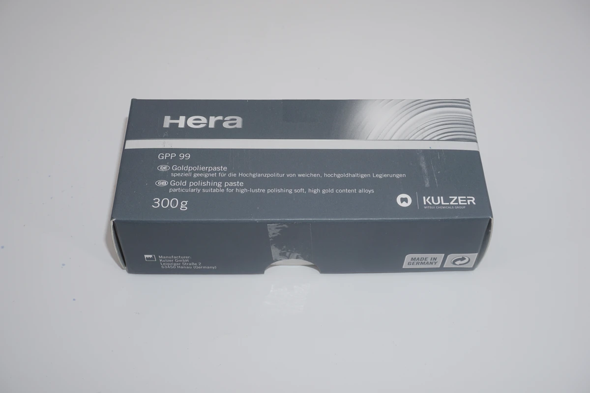 Die Goldpolierpaste Hera GP 99 wurde speziell für die Hochglanzpolitur von weichen hochgoldhaltigen Legierungen entwickelt.