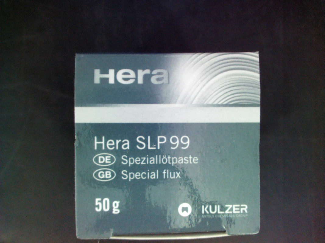 Hera SLP 99 ist ein Flussmittel zum Löten von CoCr-Basis und NiCr-Basis Legierungen. Es eignet sich aber ebenso für Lötungen zwischen Edelmetall- und NEM-Legierungen.