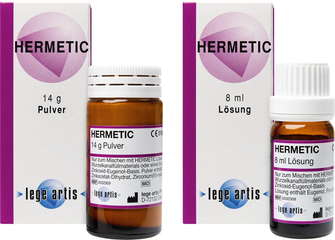 HERMETIscher Wurzelkanalverschluss: Zinkoxid-Eugenol-Sealer zur Abfüllung des Wurzelkanals (2-Komponenten-System).