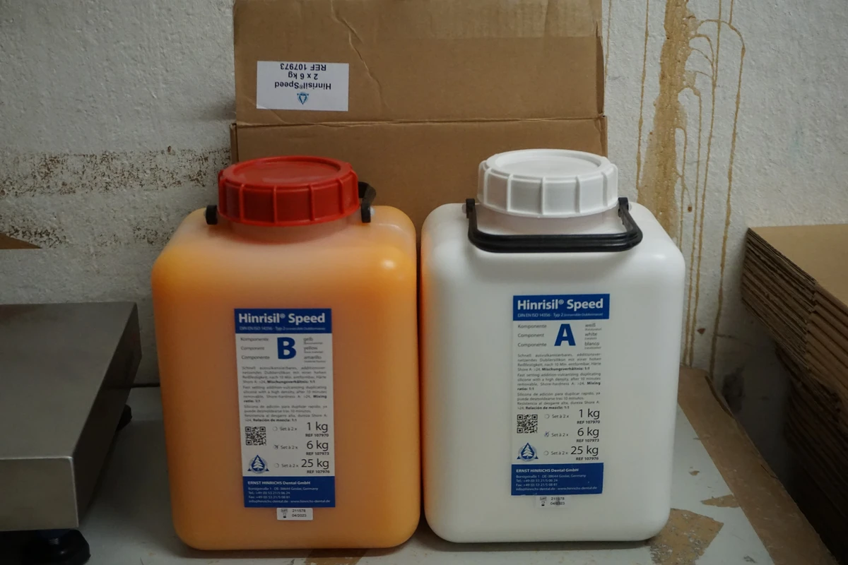 Additionsvernetzendes Dubliersilikon.Hinrisil® Speed ist ein additionsvernetzendes und schnell ausvulkanisierbares Dubliersilikon für die Klebeband- und Küvettentechnik. Hinrisil® Speed ist nach 10 Minuten entformbar und auch für den Einsatz mit Dosierautomaten geeignet.