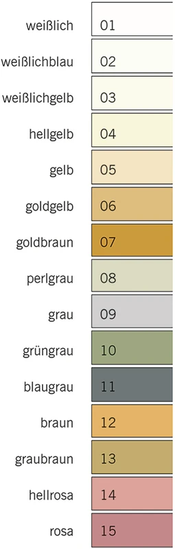 Zur definitiven Befestigung von Inlays, Kronen und Brücken (auch aus Zirkonoxid); Befestigung von orthodontischen Bändern; Einzementierung von Wurzelstiften und Schrauben; Stumpfaufbauten; Unterfüllung für alle Füllungsmaterialien (Amalgam, Komposite etc.); temporäre Füllungen. Für Allergiepatienten empfehlen wir immer Farbe 1. Lieferbar in 15 Farben.