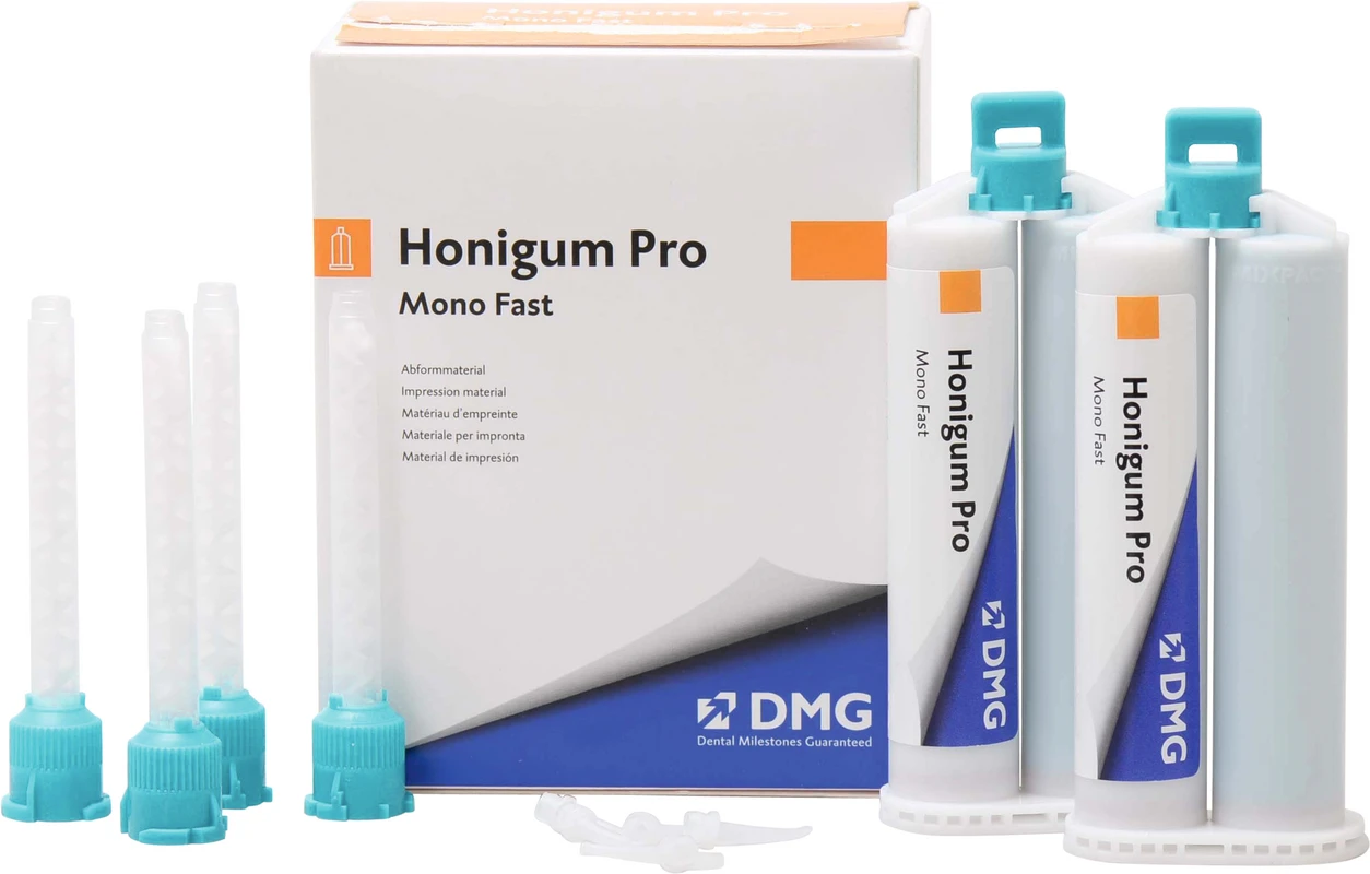 Produktinformationen "Honigum Pro Mono Fast Packung 2 x 50 ml Doppelkartusche, 4 Automix-Tips, 4 Intraoral-Tips"