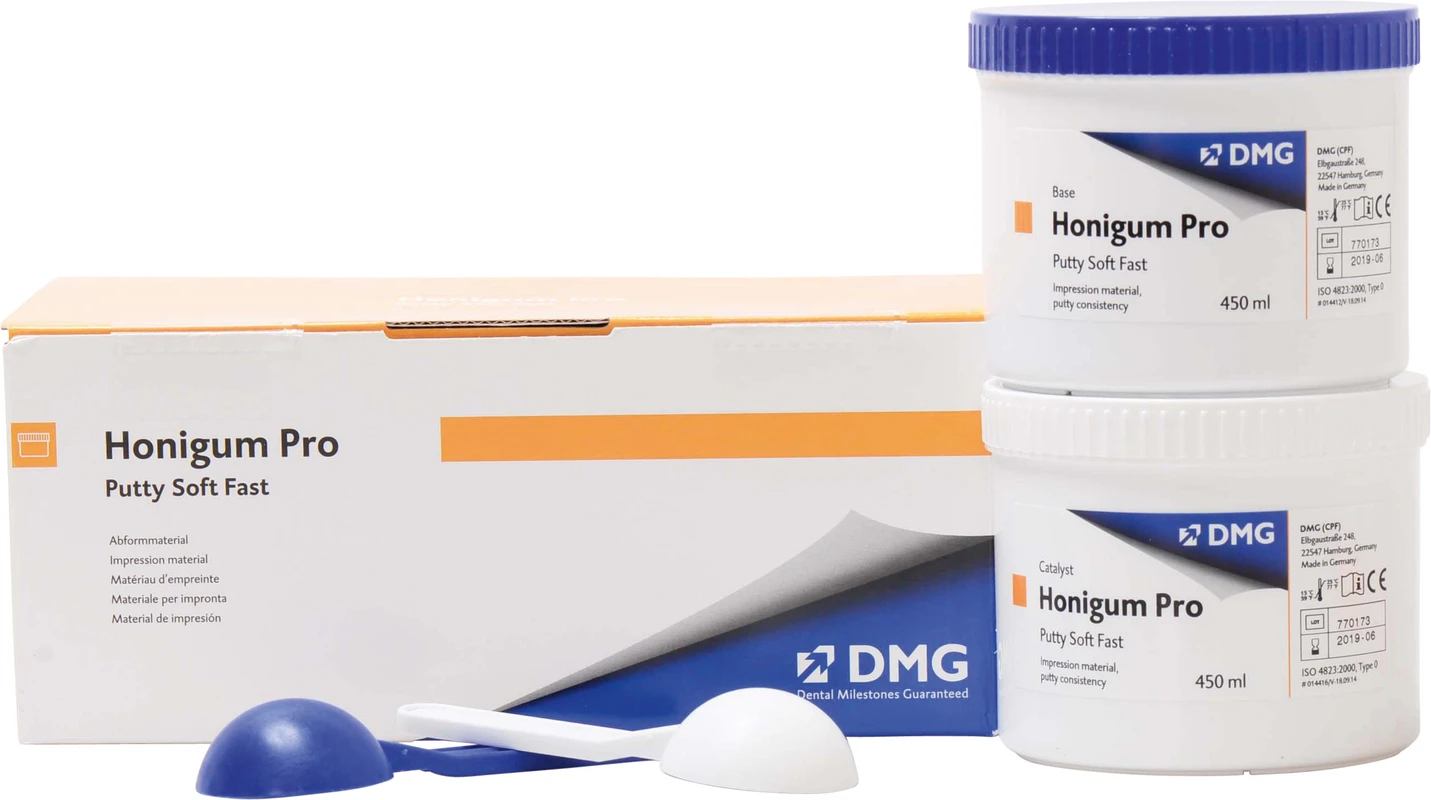 Honigum Pro Putty ist das Präzisionsmaterial in Putty-Konsistenz für detailgetreue Abformungen von Kronen und Brücken, Inlays und Onlays. Das Material verfügt über eine sehr gute Erhärtung bereits ab Mischbeginn sowie über eine sehr gute Reißfestigkeit bei hohem Rückstellvermögen. Honigum Pro Putty ist neben der klassischen Dose zur Handanmischung auch in der praktischen MixStar-Kartusche erhältlich.