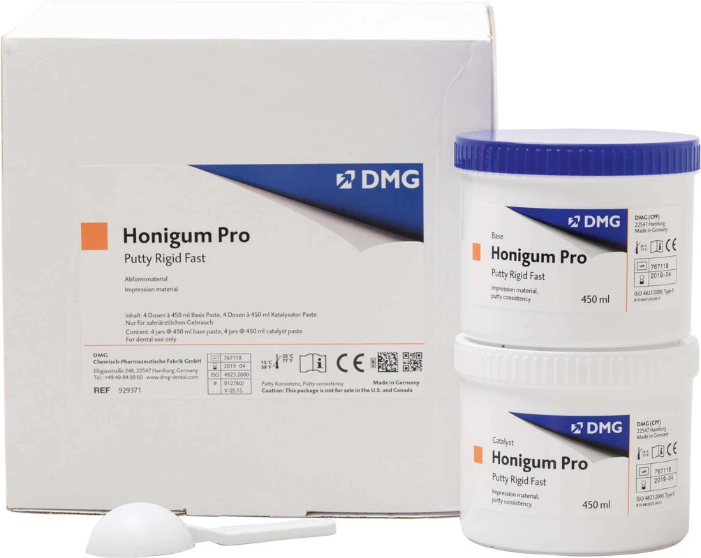 Honigum Pro Putty ist das Präzisionsmaterial in Putty-Konsistenz für detailgetreue Abformungen von Kronen und Brücken, Inlays und Onlays. Das Material verfügt über eine sehr gute Erhärtung bereits ab Mischbeginn sowie über eine sehr gute Reißfestigkeit bei hohem Rückstellvermögen. Honigum Pro Putty ist neben der klassischen Dose zur Handanmischung auch in der praktischen MixStar-Kartusche erhältlich.