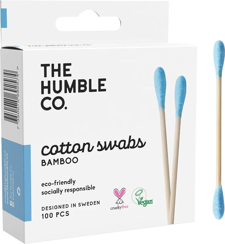 Humble Wattestäbchen sind die biologisch abbaubare, ökologische und umweltfreundliche Alternative zu herkömmlichen Kunststoffwattestäbchen. Der Griff wird aus 100 % nachhaltig angebautem Bambus gefertigt und die Watte besteht aus natürlich gefärbter reiner Bio-Baumwolle.Sowohl Wattestäbchen als auch die Spenderbox aus recyceltem Papier sind kompostierbar.