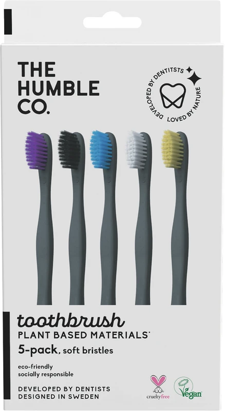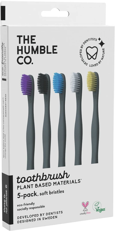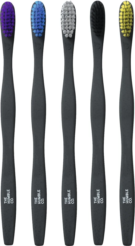 Humble Zahnbürsten pflanzenbasiert Packung 5 Stück (lila, schwarz, blau, weiß, gelb) soft, mix