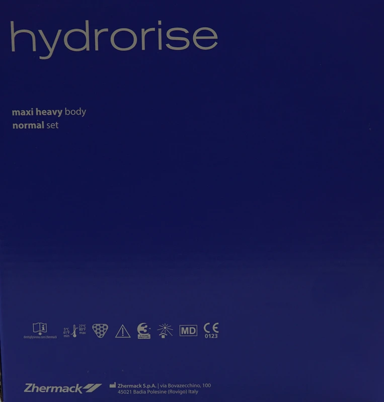 Hydrorise ist ein hyper-hydrokompatibles A-Silikon. Diese Eigenschaft erhöht die Fließfähigkeit des Silikons und verbessert dadurch die Genauigkeit der Abformung. Hydrorise ist biokompatibel und thixotrop und besitzt ein ideales Verhältnis zwischen Verarbeitungs- und Abbindezeit. Das A-Silikon überzeugt durch seine hohe Rückstellfähigkeit und hohe Dimensionsstabilität bis zu 21 Tagen. Hydrorise Heavy Body besitzt eine Härte von 60 ± 2 Shore A.
