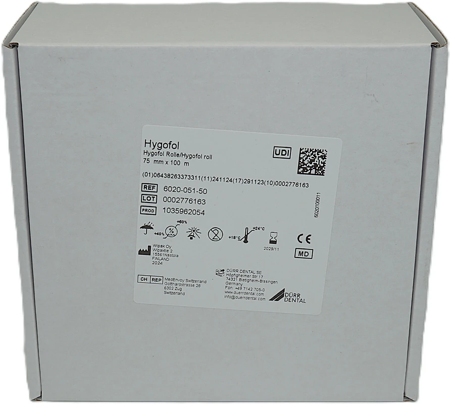 Klarsichtsterilisierverpackung Hygofol Rollenware, mit aufgedrucktem Lineal zum individuellen zuschneiden und Anfertigen optimierter Verpackungen. Hygofol zeichnet sich durch eine außerordentliche Reiß- und Durchstoßfestigkeit aus und ist für Heißsiegel- sowie Durchlaufsiegelgeräte geeignet. Sterilgut kann hierin bei vorgeschriebener, geschützter Lagerung bis zu 6 Monate aufbewahrt werden. Entspricht den relevanten Teilen der EN 868, sowie der ISO 11607.