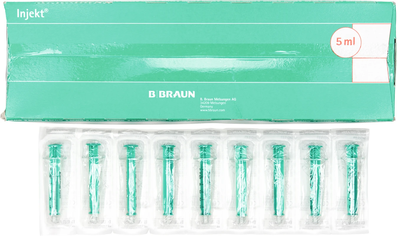 Inhalt: 100 sterile Einmalspritzen, 5 ml, Lock-Ansatz