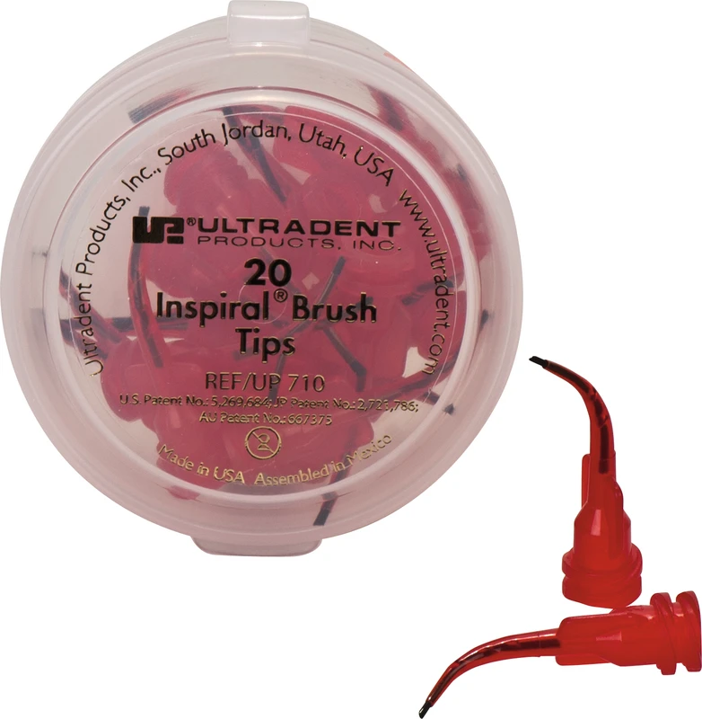 Der "Klassiker". Kunststoff-Ansatz, rot-transparent, mit Bürstenende. Die innere Spiralführung setzt die Viskosität leicht herab - optimiert die Applikation. Die Borsten können herausgezogen werden (wirken weicher) oder verkürzt werden (wirken härter). Für gelförmige Materialien.Zu verwenden mit: Composite Wetting Resin, Peak Universal Bond, PermaQuick, PQ1, Ultradent Porcelain Etch, Ultra-Etch, UltraSeal XT plus und UltraSeal XT hydro.